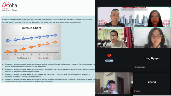 Sau gần 3 tháng học tập nghiêm túc và bền bỉ, anh chị học viên lớp PMI-ACPONLINEPRO36 đã chính thức hoàn thành chương trình luyện thi chứng chỉ PMI-ACP tại Atoha. Đây không chỉ là dấu mốc kết thúc một khóa học, mà còn là bước chuyển quan trọng trên hành trình phát triển năng lực Agile chuyên nghiệp của các anh/chị học viên.