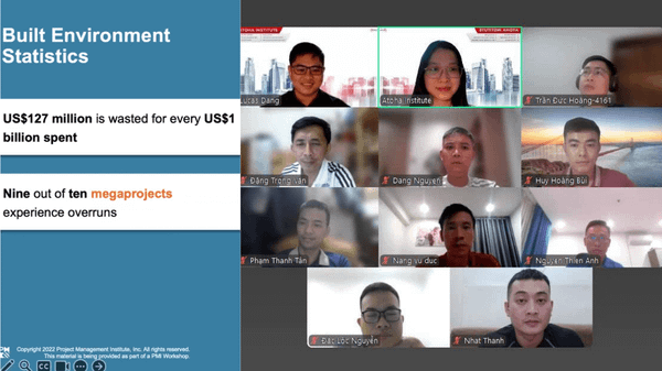 Vào tối ngày 10/08 vừa qua, Atoha triển khai thành công khóa học PMI-CPONLINEPRO4, sẵn sàng song hành cùng các anh chị học viên trên hành trình nâng cao năng lực quản lý dự án xây dựng cùng chứng chỉ PMI-CP.