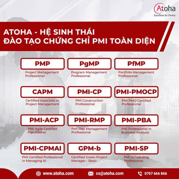 Với hệ sinh thái chương trình đào tạo PMI toàn diện, Atoha không chỉ là nơi cung cấp kiến thức, mà còn là đối tác phát triển năng lực quản lý dự án đáng tin cậy dành cho cá nhân và tổ chức.