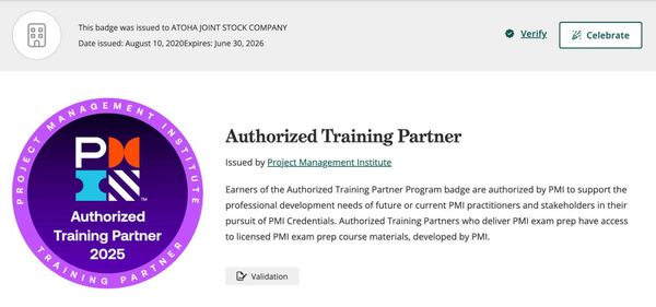 Với vai trò là đối tác đào tạo ủy quyền của PMI, Atoha mang đến khóa học PMP theo tiêu chuẩn của PMI, cùng hệ thống tài liệu bản quyền, giúp học viên tự tin sở hữu PMP Certification ngay trong lần thi đầu tiên.