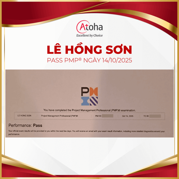 Atoha tự hào đồng hành cùng anh Lê Hồng Sơn hoàn thành mục tiêu pass PMP® on the first try. Hy vọng trong thời gian tới, Atoha sẽ tiếp tục có cơ hội song hành cùng anh chinh phục những mục tiêu mới, cao hơn, giá trị hơn.