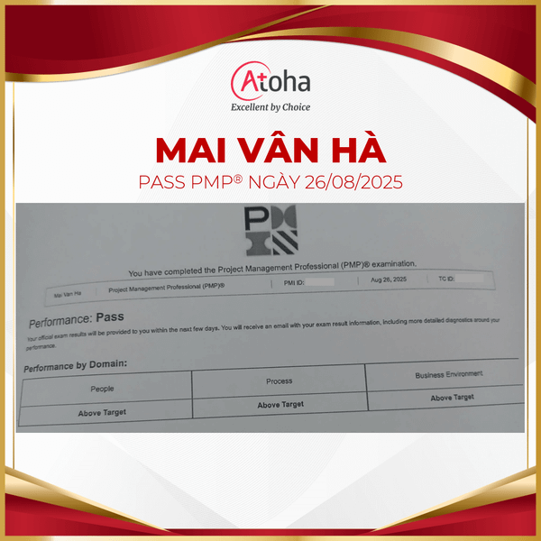 Atoha rất tự hào khi có cơ hội đồng hành và hỗ trợ chị Mai Vân Hà hoàn thành mục tiêu chinh phục chứng chỉ PMP® của mình và hy vọng sẽ tiếp tục có cơ hội song hành cùng chị trên những chặng đường tiếp theo.