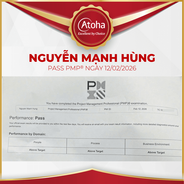 Chúc mừng anh Nguyễn Mạnh Hùng đã thành công vượt qua kỳ thi chứng chỉ PMP® (Project Management Professional) với kết quả tối đa - đạt Above Target ở cả 03 domains ngay trong lần thi đầu tiên vào ngày 12/02/2026! Đây là thành quả xứng đáng dành cho sự kiên trì, nỗ lực không ngừng nghỉ của anh trong hành trình chinh phục tri thức và kỹ năng quản lý dự án. Việc đạt được chứng chỉ PMP® không chỉ giúp anh khẳng định vị thế trong lĩnh vực quản lý dự án mà còn mở ra nhiều cơ hội mới trên con đường phát triển sự nghiệp.