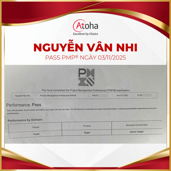 Thành tích này không chỉ đánh dấu một cột mốc đáng nhớ trên hành trình phát triển nghề nghiệp của chị, mà còn lan tỏa nguồn cảm hứng tích cực đến cộng đồng học viên Atoha đang từng ngày hướng tới chuẩn mực quản lý dự án quốc tế. Chúc chị tiếp tục giữ vững tinh thần học hỏi, phát huy thế mạnh trong công việc và mở ra thêm nhiều cơ hội mới trong chặng đường phía trước.