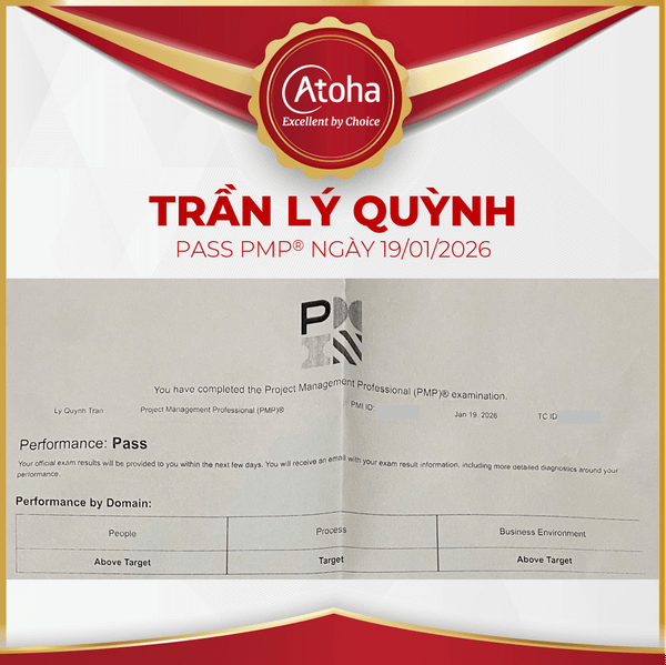 Mỗi hành trình chinh phục thành công đều là một câu chuyện được viết nên từ sự kiên trì, kỷ luật và quyết tâm theo đuổi mục tiêu đến cùng. Vào ngày 27/03/2025, Atoha vô cùng vui mừng khi được chia sẻ niềm vui và niềm tự hào cùng anh Trần Lý Quỳnh khi anh xuất sắc vượt qua kỳ thi PMP® và hoàn thành cột mốc quan trọng đầu tiên trong năm 2026.
